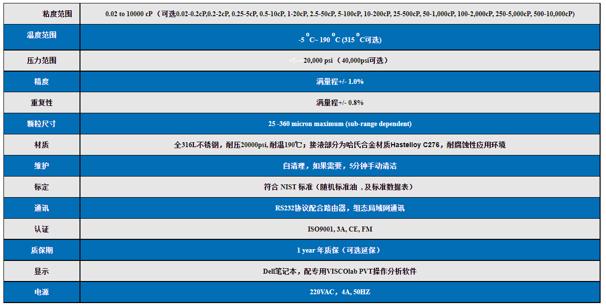 1.高壓范圍:能夠承受高壓條件下的測試需求。根據不同的應用場景,高壓粘度計可以具備不同的壓力范圍,通??蛇_到幾千至數萬帕斯卡(Pa)的壓力范圍。