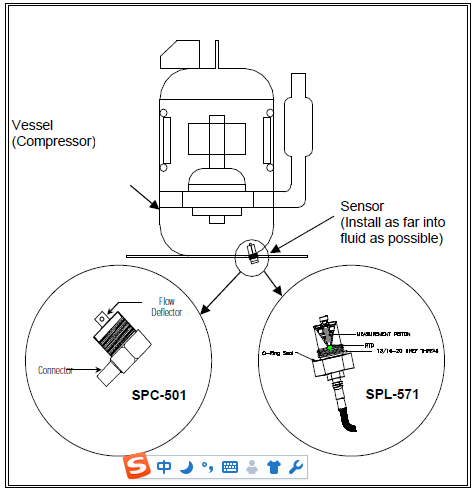 SPL571 OILSENSE可整齊地安裝在1/2英寸的塊狀接頭或三通中??稍?.5至500厘泊(cP)之間的6種不同20:1粘度范圍內進行測量。建議流過傳感器的液體流量高達1.0英尺/秒。