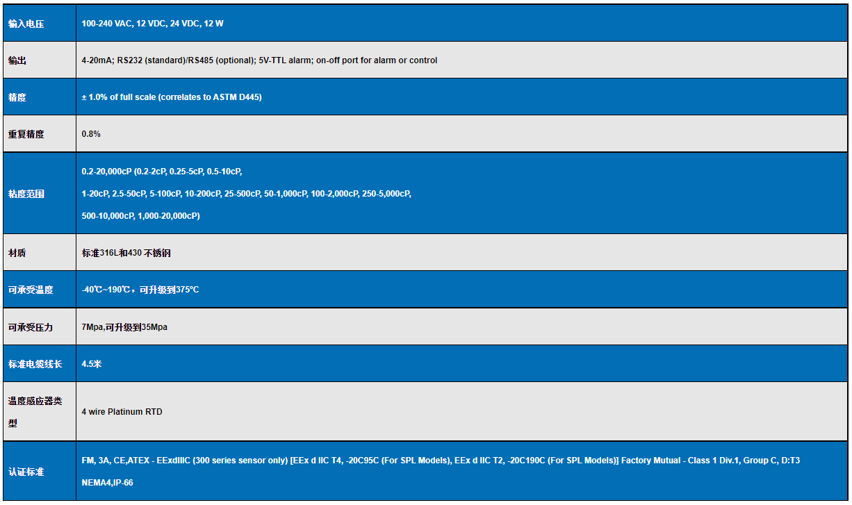 VISCOpro2000系統提供菜單軟件驅動電子元件,去配合并控制Cambridge公司的高質量嵌入式和罐內探頭。功能強大并且操作簡單,VISCOpro2000系統可以在一個增強型圖形顯示屏上顯示提供粘度,溫度,溫度補償粘度,以及可選擇的粘度數值。工廠設定了13個默認標準,測量范圍從0.2-20000 CP, 具備更高的測量精度。