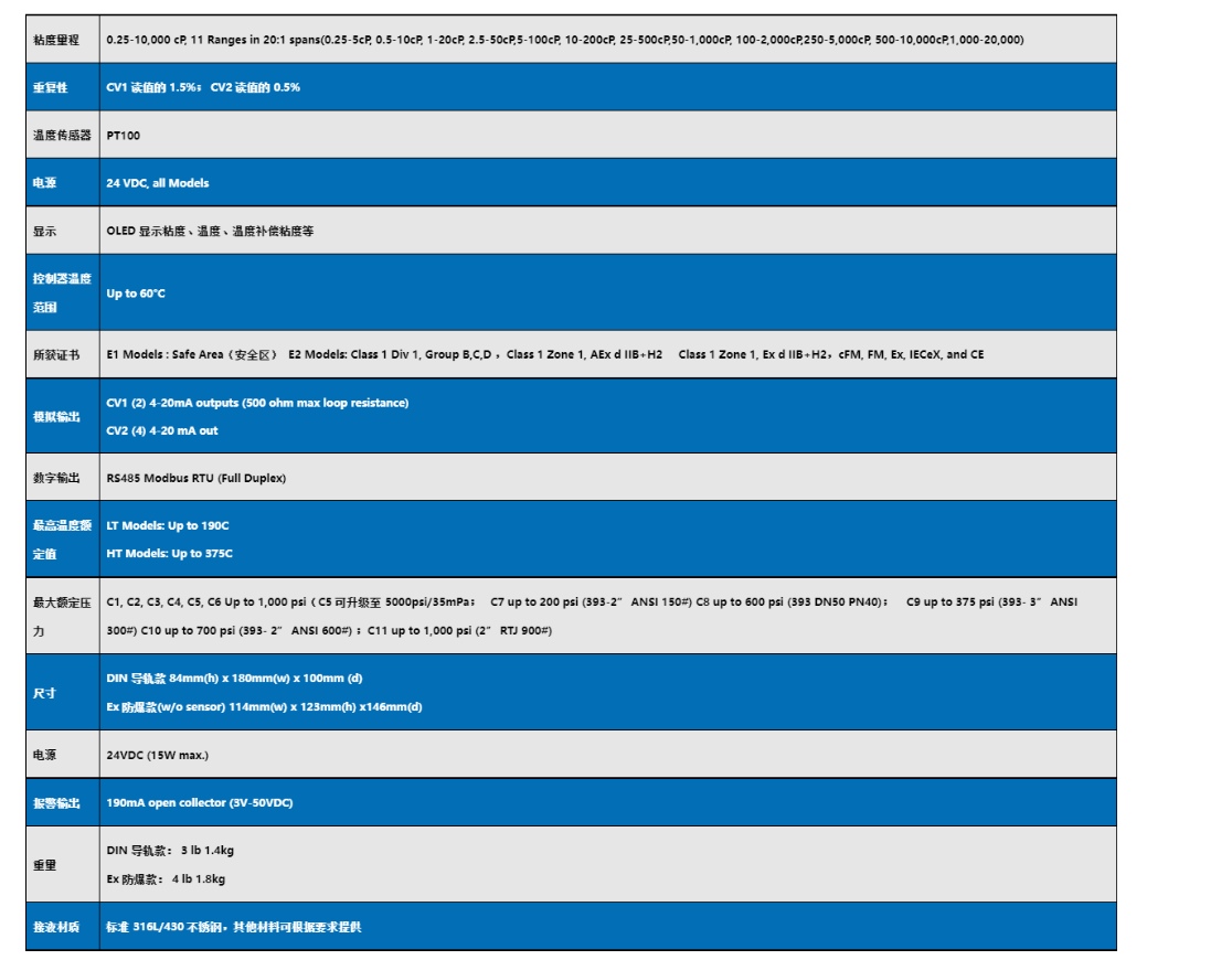 6.可選溫度補償功能TCV,符合ASTM D341標準。